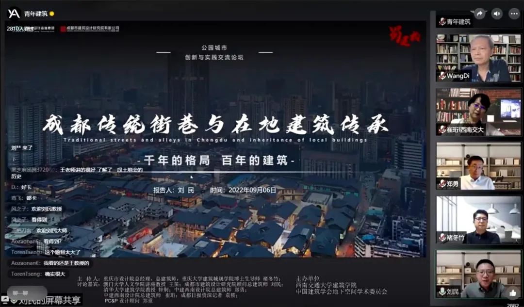 9月6日,以“成都街道公共空間的地域文化”為主題的(de)第十期公園城市創新(xin)與實踐(jian)交(jiao)流論壇(tan)在青年建筑直播平臺(tai)上成(cheng)功召開。活動(dong)共吸引7000余名觀(guan)眾在線觀(guan)看(kan),創該系(xi)列活動(dong)收(shou)看(kan)新(xin)高。