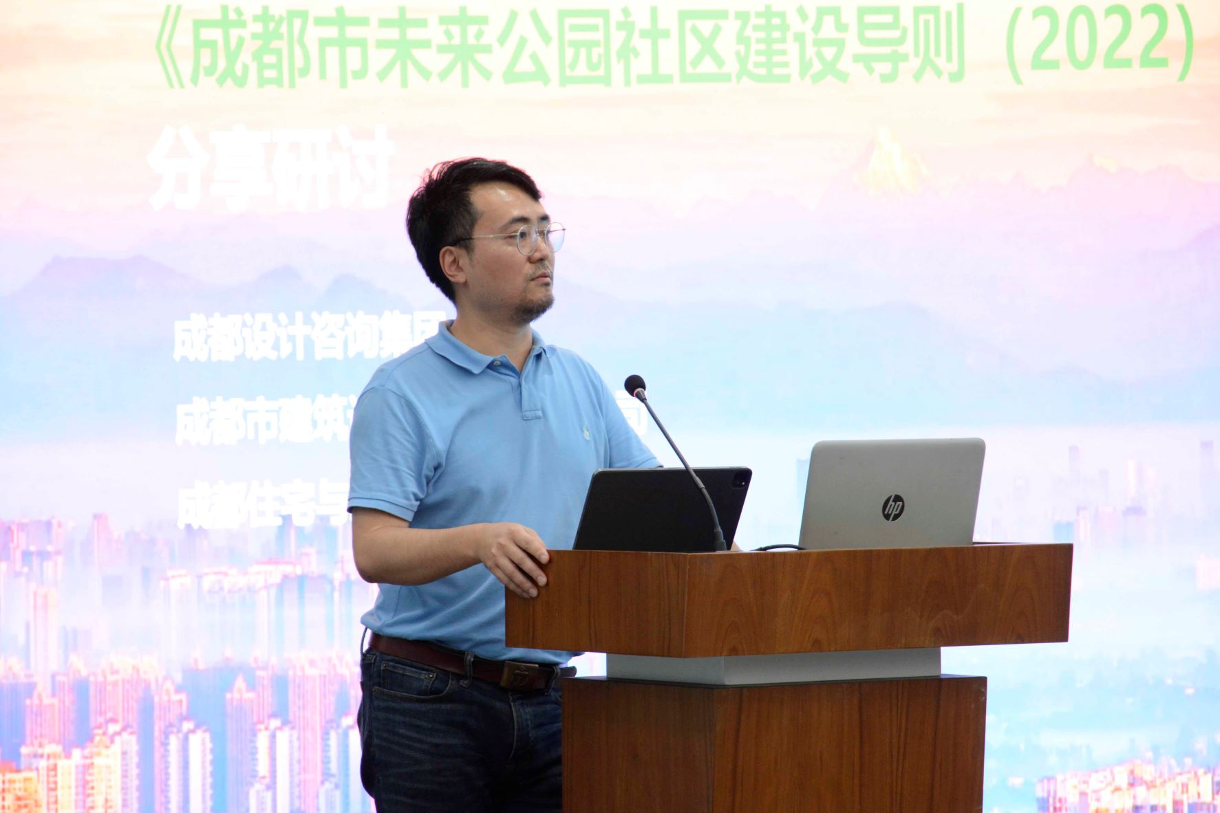 研討會由市建筑院景觀規劃設計二所所長王磊帶來“未來社區怎么建”主題分享,他圍繞《成都市未來公園社區建設導則(2022年版)》(以下簡稱《導則》)的編制過程及內容要點,聚焦“建設背景、建設要求、建設指標、實施保障”四個方面內容,對未來公園社區建設中如何推動公園形態與社區肌理相融、公園場景與人民生活相適、生態空間與生產生活空間相宜做了精彩講解。