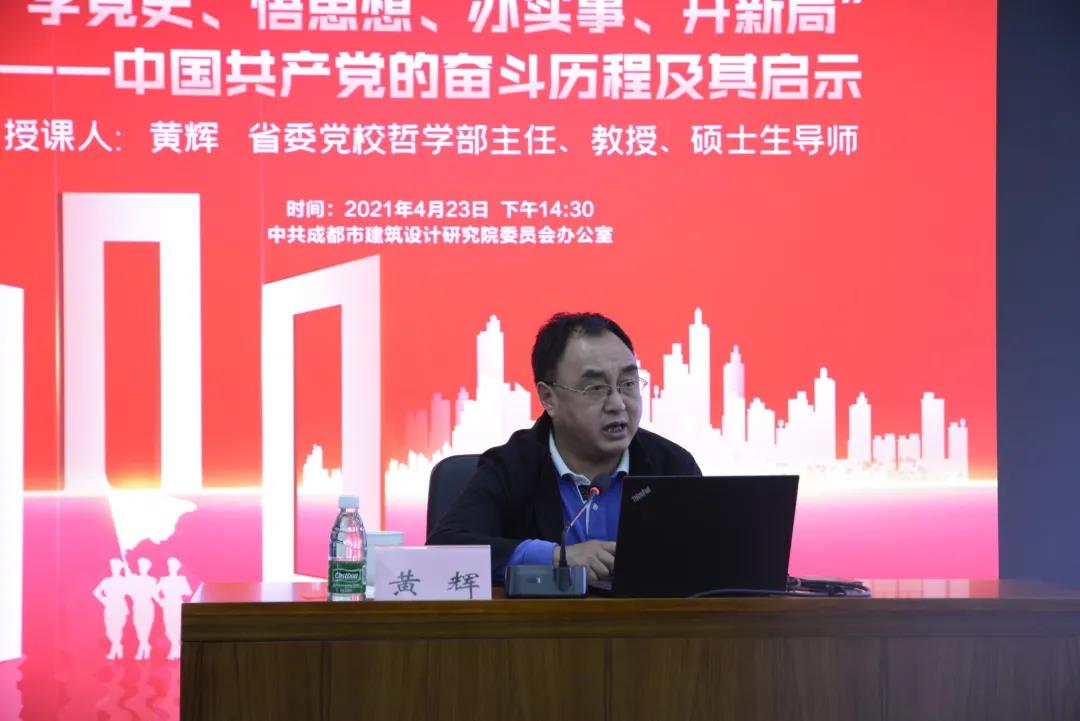 ?????? ?4月23日,CDAD舉(ju)辦(ban)黨(dang)史(shi)(shi)(shi)學(xue)(xue)習教(jiao)(jiao)育專題講(jiang)座,邀請四(si)(si)(si)川(chuan)省委黨(dang)校哲(zhe)學(xue)(xue)部(bu)主(zhu)任、教(jiao)(jiao)授(shou)、碩士生導師(shi),四(si)(si)(si)川(chuan)省社會(hui)(hui)主(zhu)義(yi)社會(hui)(hui)辯(bian)證法學(xue)(xue)會(hui)(hui)會(hui)(hui)長,四(si)(si)(si)川(chuan)省委宣講(jiang)團成(cheng)員黃輝教(jiao)(jiao)授(shou)現場授(shou)課,教(jiao)(jiao)育引導廣大黨(dang)員干部(bu)學(xue)(xue)黨(dang)史(shi)(shi)(shi)、悟思想、辦(ban)實(shi)事、開(kai)新局,高(gao)標準(zhun)高(gao)質量扎實(shi)推進黨(dang)史(shi)(shi)(shi)學(xue)(xue)習教(jiao)(jiao)育,做到學(xue)(xue)史(shi)(shi)(shi)明理、學(xue)(xue)史(shi)(shi)(shi)增信、學(xue)(xue)史(shi)(shi)(shi)崇德、學(xue)(xue)史(shi)(shi)(shi)力行。