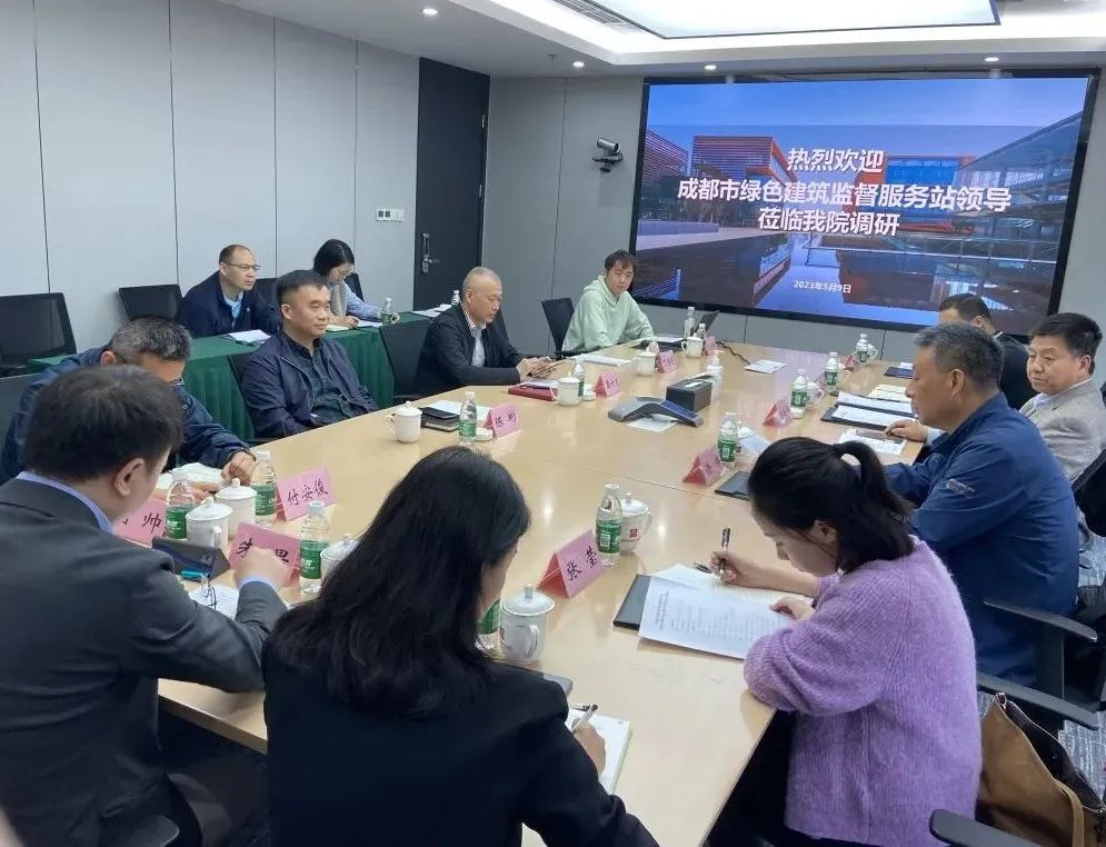 5月9日,成都市綠色建筑監督服務站赴成都市建筑設計研究院有限公司調研指導工作。成都市綠色建筑監督服務站站長楊栓民、副站長徐煒一行,市建筑院黨委副書記、紀委書記、工會主席周六光,黨委委員、總工程師陳彬及相關部門參加調研。