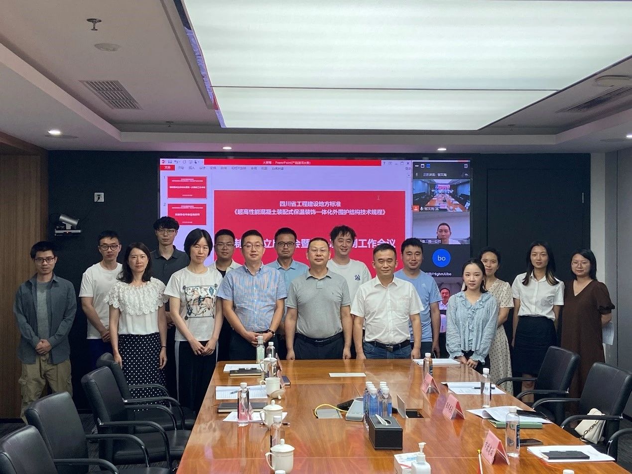 成都市綠色建筑監督服務站、成都市建設工程質量監督站、成都建工工業化建筑有限公司、中建西部建設股份有限公司、四川華構住宅工業有限公司,成都市建筑科學研究有限公司,四川大學,中建三局第一建設工程有限責任公司、四川世茂新材料有限公司、成都東藍星新材料有限公司、成都市建筑設計研究院有限公司等相關單位專家代表參加會議。
