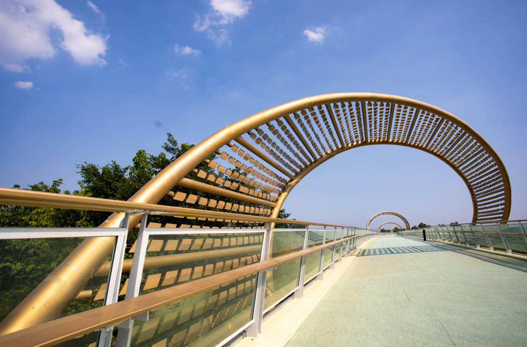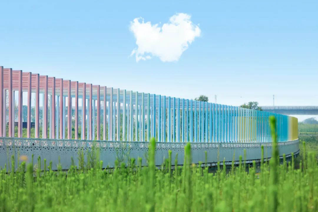 橫(heng)跨雙靈觀河(he)的雙靈觀橋(qiao)(qiao),則呈現(xian)了一(yi)條彩(cai)虹綠道,讓(rang)通(tong)行的人們(men)感受到“光與溫暖”。180根(gen)柱子順應(ying)線(xian)形序列形成七(qi)彩(cai)漸變色(se),穿越橋(qiao)(qiao)梁,收獲彩(cai)虹色(se)的心情(qing)。