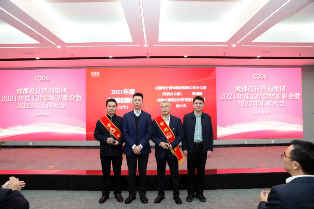 ? ? ? ?在獲獎代表言環節,捧著先進集體獎牌的何昕,感嘆這份獎勵的“沉甸甸”和來之不易!他說,2021年是集團成立元年,也是市建筑院轉企改制的元年,過去的一年,市建筑院實現營收同比增長130%。“新的一年,我們將始終不忘為公園城市而生的初心使命,不斷提升自我能力,保持發展定力,構建精細化、現代化的管理體系,助推公園城市建設,奮力譜寫成都設計咨詢集團和市建筑院發展的新篇章”。