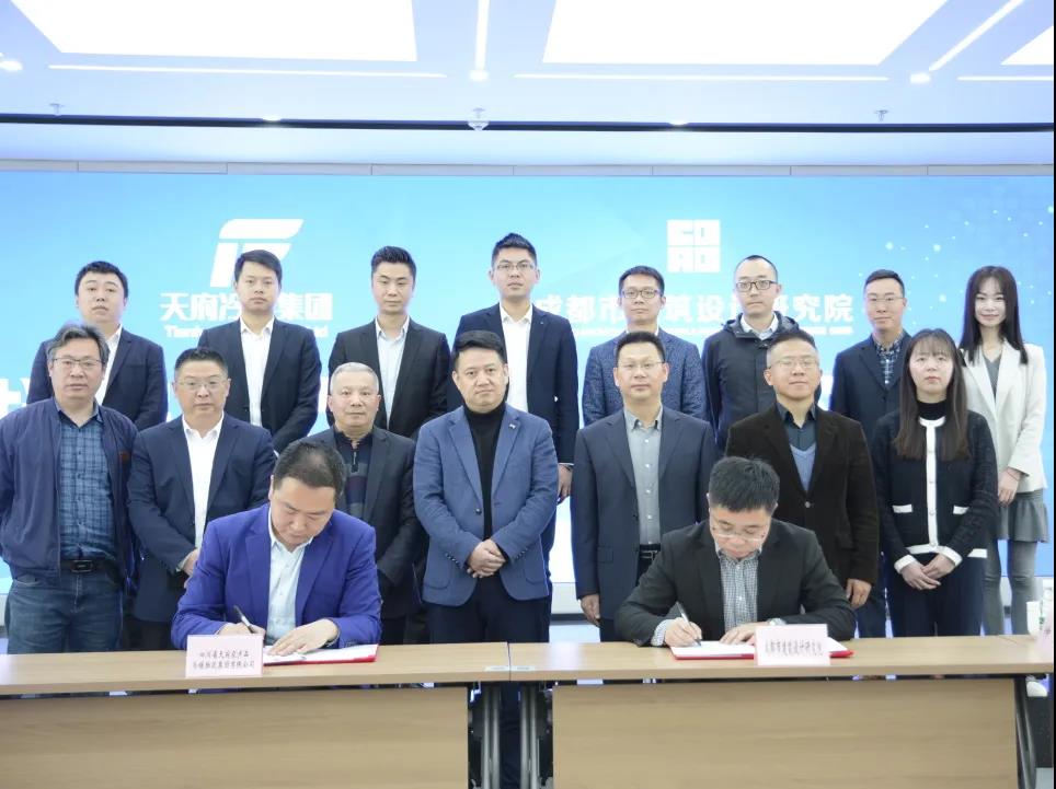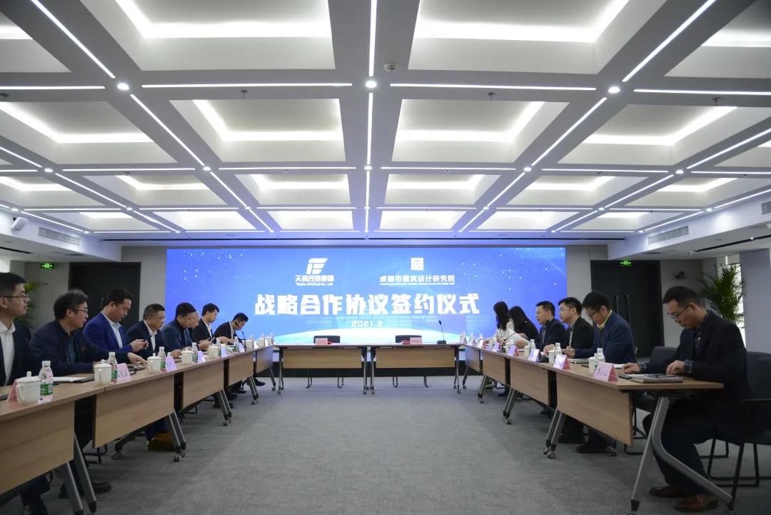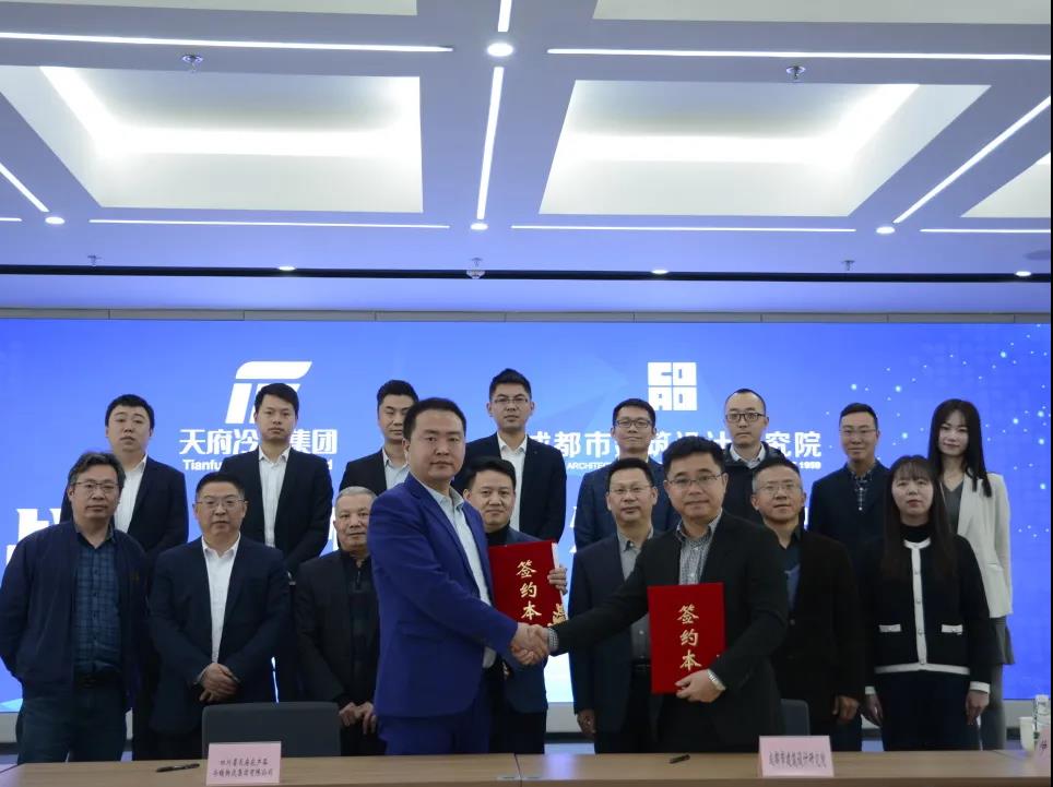 ??????? ?3月3日,成都市建筑設(she)計研究院(yuan)(yuan)(以下簡稱CDAD)與四川省天(tian)府農產品冷鏈(lian)(lian)物流集(ji)團有限公司(以下簡稱:天(tian)府冷鏈(lian)(lian)集(ji)團)戰(zhan)略(lve)合作協(xie)議簽(qian)約(yue)儀(yi)式(shi)在CDAD隆重(zhong)舉行。天(tian)府冷鏈(lian)(lian)集(ji)團總(zong)(zong)(zong)裁尹曼殊、副(fu)總(zong)(zong)(zong)裁李斌、財務(wu)總(zong)(zong)(zong)監楊(yang)中能(neng)、戰(zhan)略(lve)投(tou)資(zi)事(shi)業部總(zong)(zong)(zong)監馬(ma)亞(ya)芳等一行十(shi)人(ren),成都設(she)計咨(zi)詢(xun)集(ji)團副(fu)總(zong)(zong)(zong)經理(li)、CDAD黨委(wei)書(shu)記、院(yuan)(yuan)長徐軍、副(fu)院(yuan)(yuan)長王(wang)武、院(yuan)(yuan)總(zong)(zong)(zong)建筑師劉民、工程總(zong)(zong)(zong)承(cheng)包事(shi)業部副(fu)總(zong)(zong)(zong)經理(li)尹福綿(mian)、龔小山等出席簽(qian)約(yue)儀(yi)式(shi)。