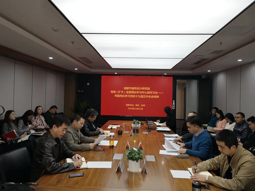 11月11日(ri),CDAD召開黨(dang)委(wei)(擴(kuo)大會)會暨理論(lun)學習(xi)中心組學習(xi)會專題(ti)傳達學習(xi)黨(dang)的(de)十(shi)九(jiu)屆五中全會精神,就(jiu)全面貫徹落實五中全會精神作出(chu)部(bu)署(shu)。CDAD黨(dang)委(wei)書記、院長徐軍(jun)主持會議并傳達了黨(dang)的(de)十(shi)九(jiu)屆五中全會精神,黨(dang)政領導(dao)班(ban)子(zi)、部(bu)門負責(ze)人及分子(zi)公司負責(ze)人、黨(dang)支部(bu)書記參(can)加(jia)學習(xi)。