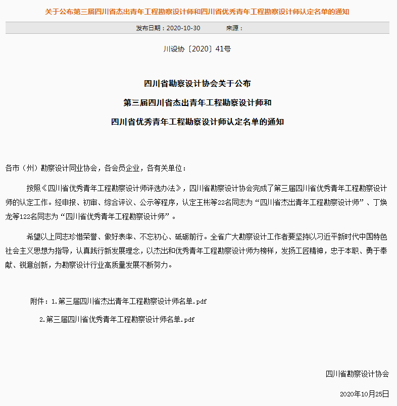 ? ? ? ?近(jin)日,四川(chuan)(chuan)省(sheng)(sheng)勘察(cha)設計協會公布第三屆四川(chuan)(chuan)省(sheng)(sheng)杰出青年(nian)工(gong)程勘察(cha)設計師和(he)四川(chuan)(chuan)省(sheng)(sheng)優秀青年(nian)工(gong)程勘察(cha)設計師認定名單,CDAD五位同志憑借多年(nian)過硬的(de)(de)專業技(ji)術(shu)素養和(he)出色的(de)(de)表(biao)現在(zai)此次評選中脫穎而出,其(qi)中,陳乃(nai)志(zhi)獲(huo)評(ping)“四川省杰出青(qing)年(nian)工(gong)程(cheng)勘(kan)察(cha)設計師”稱(cheng)號(hao),丁(ding)煥龍、王巍、付安俊、何(he)昕獲(huo)評(ping)“四川省優秀青(qing)年(nian)工(gong)程(cheng)勘(kan)察(cha)設計師”稱(cheng)號(hao)。