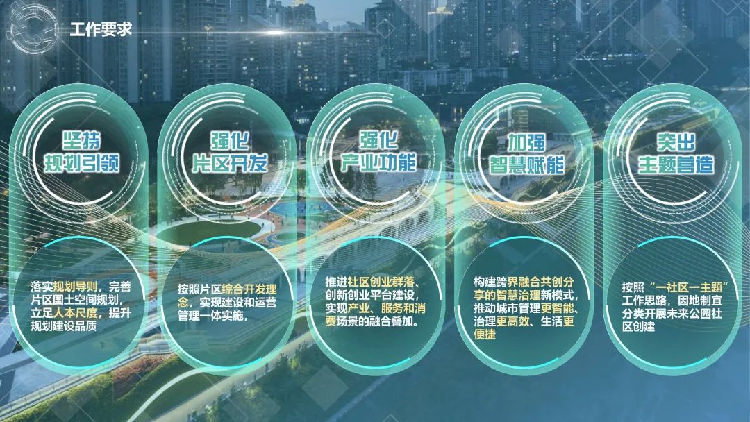 未來公園社區作為建設踐行新發展理念的公園城市示范區的一種高階形態和示范工程,《導則》把握城市功能單元和社區建設的前沿發展趨勢,在現行國家和地方規范標準基礎上,聚焦更安全、更宜人、更智慧、更低碳、更健康、更共享的建(jian)設目(mu)標,建(jian)設具有成都味、歸屬感(gan)、示范性的新型城市功能單元。