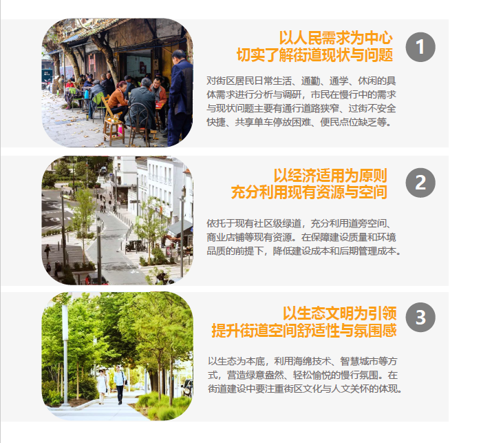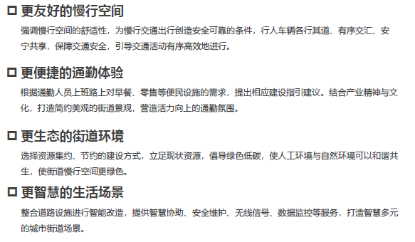 ??????? 新(xin)建(jian)街道(dao)(dao)應以目標(biao)(biao)為導(dao)(dao)向(xiang),以明確的風格(ge)愿景(jing)和(he)建(jian)設目標(biao)(biao)來引導(dao)(dao)建(jian)設方向(xiang),而(er)改造街道(dao)(dao)則應以問題(ti)為導(dao)(dao)向(xiang),梳理(li)分析(xi)現存問題(ti),通過景(jing)觀(guan)的手法(fa)來解決(jue)市民(min)實(shi)際使用(yong)的需(xu)求。