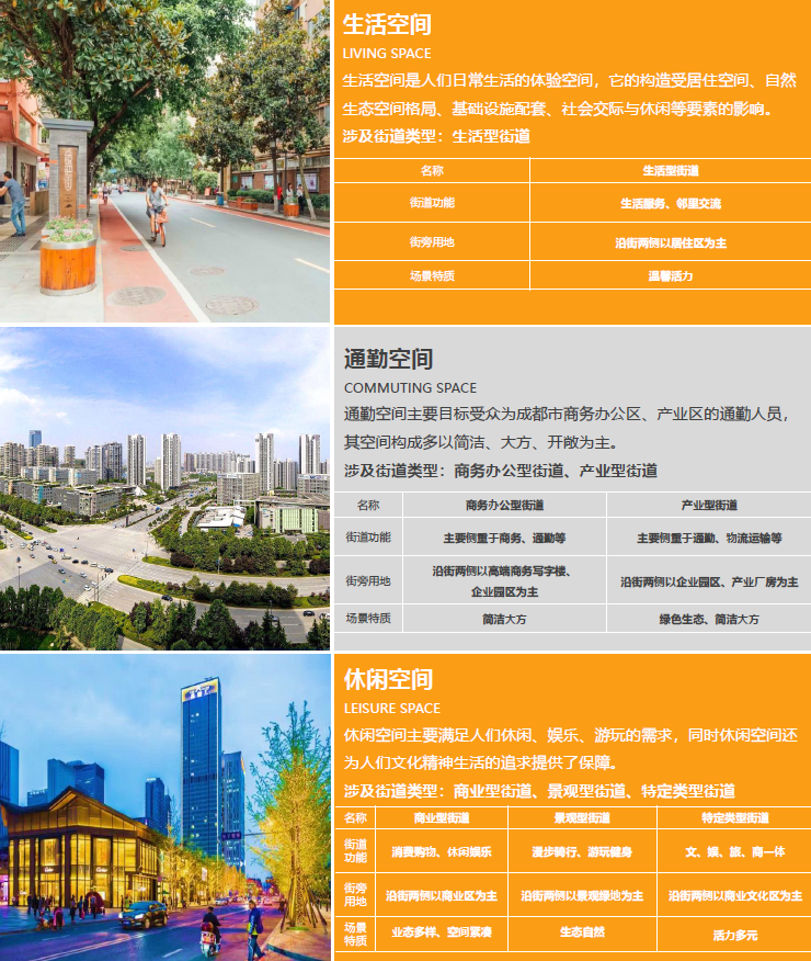 ??????? 根據人們(men)日常的生(sheng)活生(sheng)產需求(qiu)和現狀(zhuang)城市街道的屬(shu)性,分析(xi)出(chu)人們(men)在街道中(zhong)的空(kong)間(jian)場景主要分為生(sheng)活空(kong)間(jian)、通(tong)勤(qin)空(kong)間(jian)、休閑空(kong)間(jian)三類。