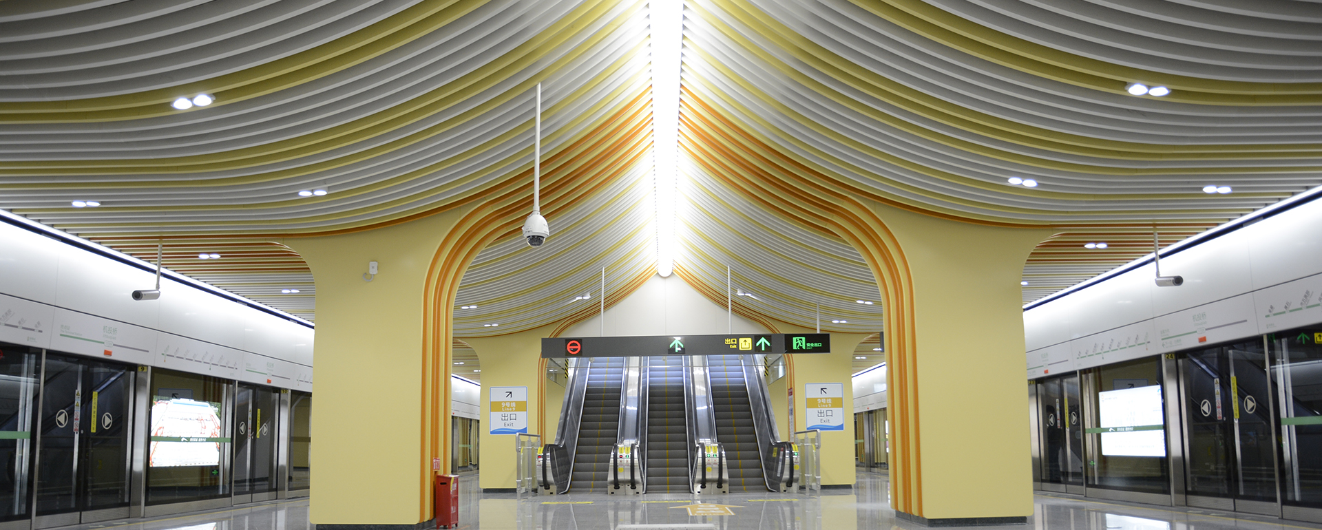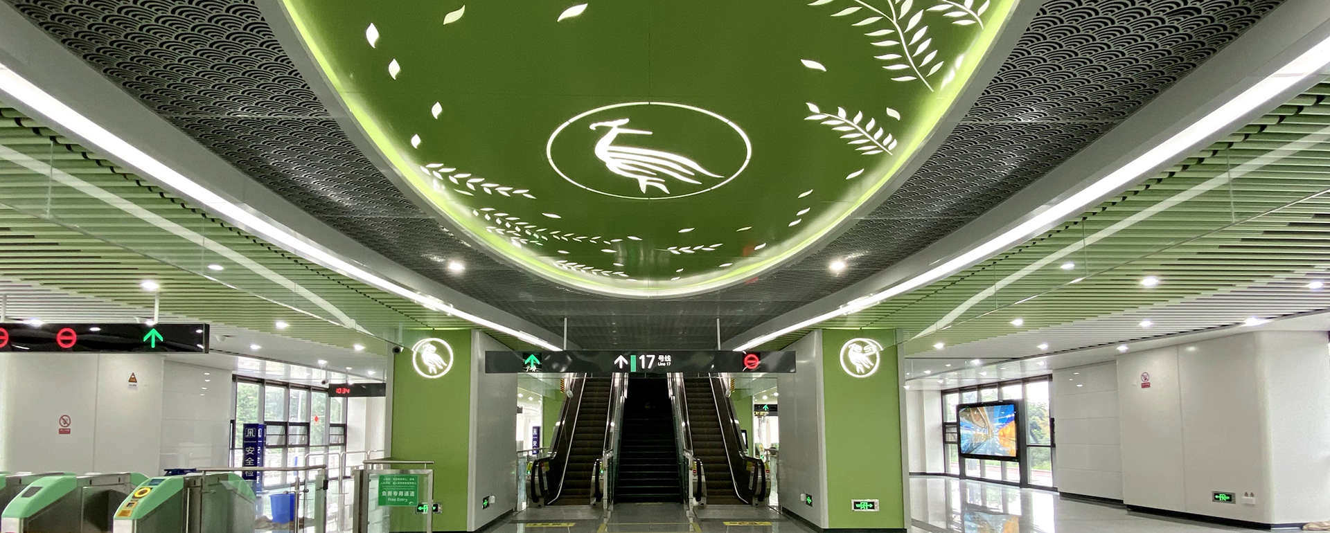整條(tiao)線(xian)路以(yi)(yi)“滴水(shui)潤天府,柳城舞(wu)飛鳳,生態綠成都,絲織(zhi)入錦(jin)城” 的(de)水(shui)育錦(jin)城為主題,提取自然的(de)秀麗形(xing)(xing)態與(yu)(yu)歷(li)史的(de)文(wen)(wen)昌古韻(yun),來表達(da)天府之都在(zai)水(shui)文(wen)(wen)化孕(yun)育下的(de)生態與(yu)(yu)健(jian)康,例(li)(li)如(ru)鳳溪河站的(de)裝修(xiu)以(yi)(yi)水(shui)文(wen)(wen)化進(jin)(jin)行(xing)空間塑造,打(da)造沉(chen)浸式(shi)體(ti)驗藝術空間;線(xian)路東段設(she)計(ji)從成都的(de)歷(li)史與(yu)(yu)傳統(tong)(tong)印象進(jin)(jin)行(xing)挖(wa)掘(jue),以(yi)(yi)成都傳統(tong)(tong)蜀(shu)錦(jin)織(zhi)布機與(yu)(yu)傳統(tong)(tong)民居特有(you)的(de)韻(yun)味來表達(da)成都記憶的(de)浮光(guang)掠影,例(li)(li)如(ru)機投橋站以(yi)(yi)將織(zhi)造的(de)美感(gan)大膽與(yu)(yu)傳統(tong)(tong)建筑進(jin)(jin)行(xing)拼接,形(xing)(xing)成獨特的(de)新舊對話(hua)。