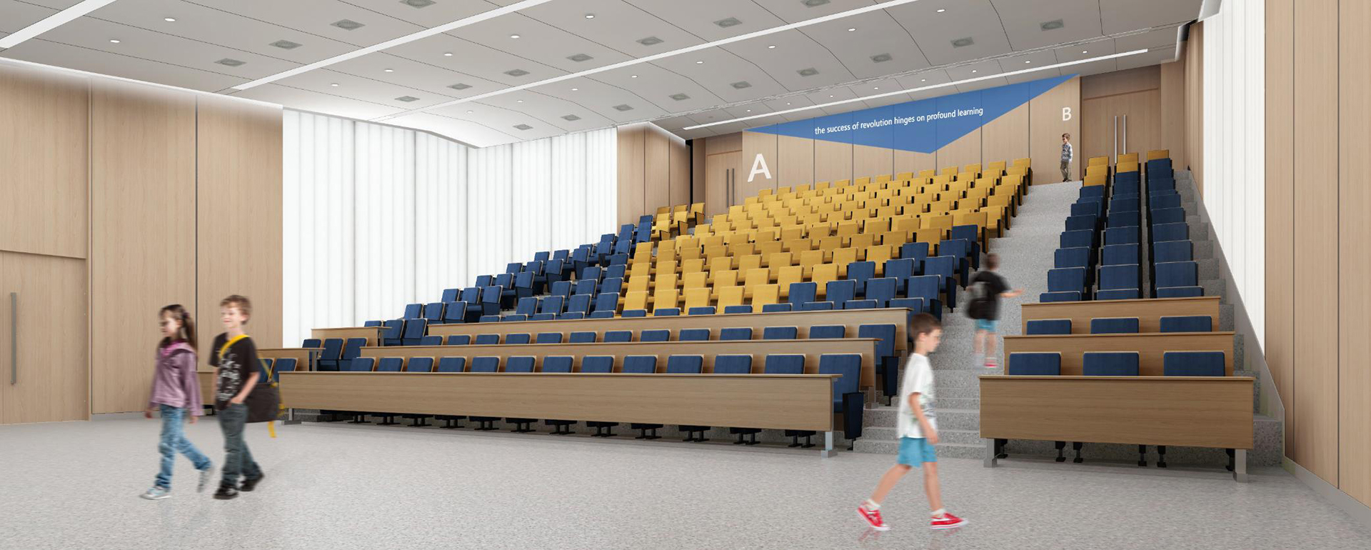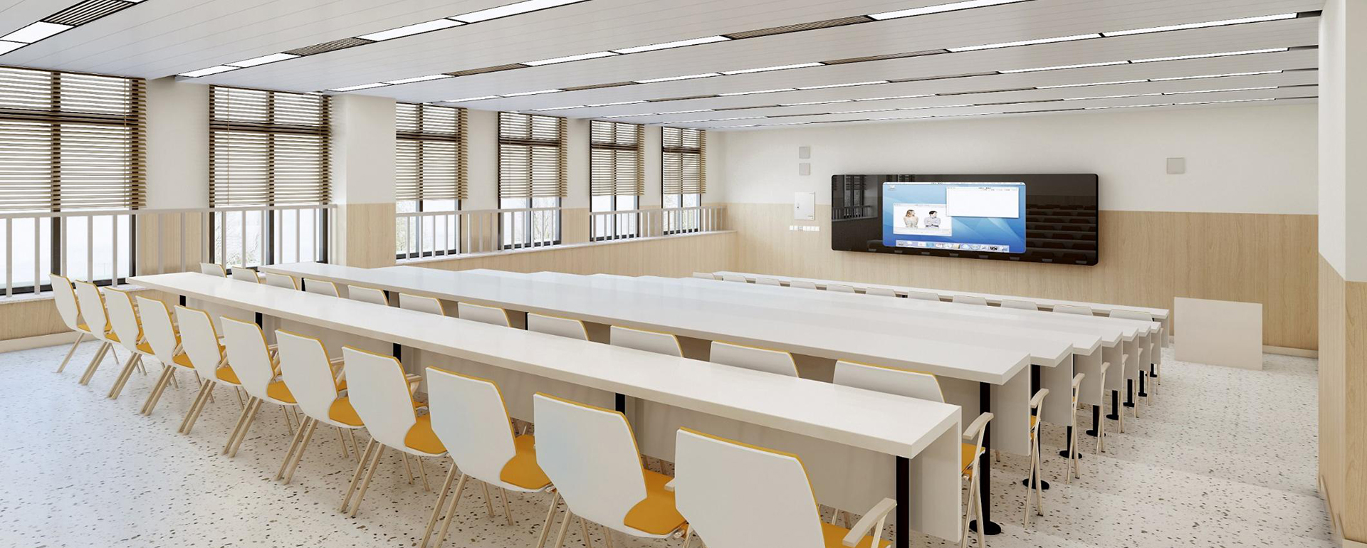 學校是典型(xing)的(de)(de)(de)學院派建(jian)筑(zhu),灰瓦屋頂+紅磚(zhuan)墻的(de)(de)(de)搭配,與(yu)片區整體工業風格(ge)相(xiang)交相(xiang)融,室內空(kong)間氛(fen)圍(wei)的(de)(de)(de)營造是建(jian)筑(zhu)設計(ji)的(de)(de)(de)延續,是文化(hua)內容的(de)(de)(de)傳承,是使用功能的(de)(de)(de)細(xi)分,是人文關懷(huai)的(de)(de)(de)體驗,更(geng)是學校特色的(de)(de)(de)展(zhan)現(xian)。空(kong)間圍(wei)繞“文、思(si)(si)、創、融”四(si)個角(jiao)度,木紋做(zuo)裝飾,色彩做(zuo)點綴,展(zhan)現(xian)少年時代(dai)的(de)(de)(de)活力四(si)射、思(si)(si)而(er)有(you)啟、創更(geng)有(you)意(yi)、融即新生的(de)(de)(de)態度。