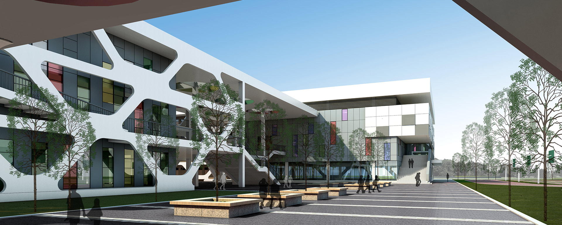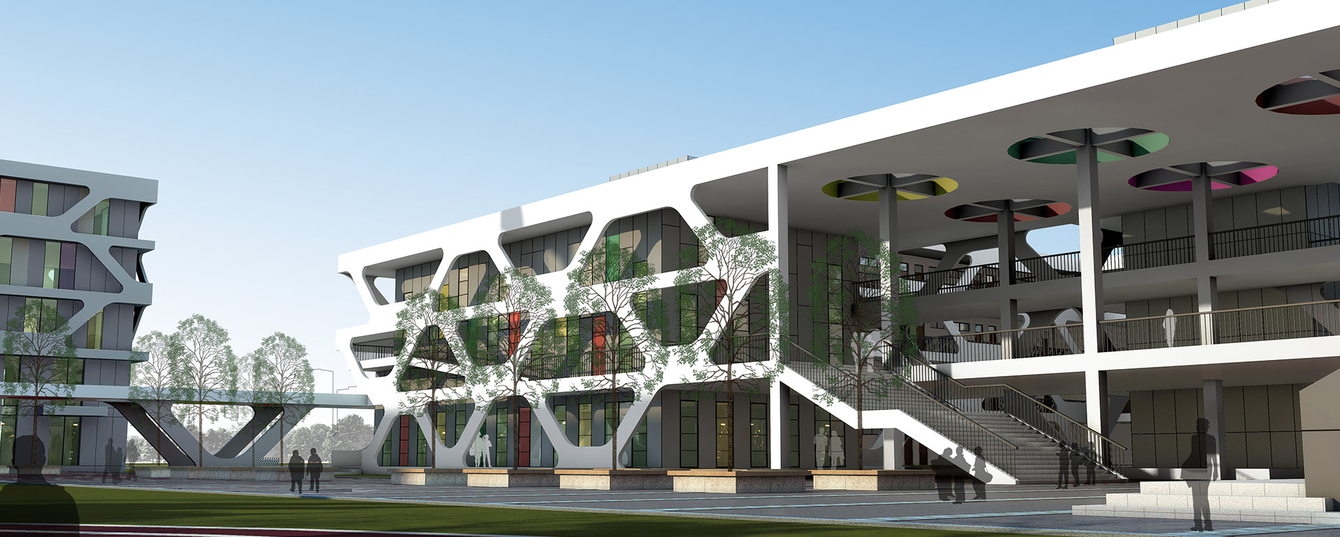 將(jiang)常規單調(diao)(diao)的教室外柱廊受(shou)力構件(jian)轉換為網絡(luo)狀造型,形成豐富 的光影和獨(du)特新穎的立面效果,為師(shi)生營(ying)造出生動(dong)有趣的教學(xue)環境。強(qiang)調(diao)(diao)小學(xue)校園(yuan)建筑的活潑靈動(dong)和富于(yu)想象,使其成為城(cheng)市中一處獨(du)特的景觀節(jie)點。