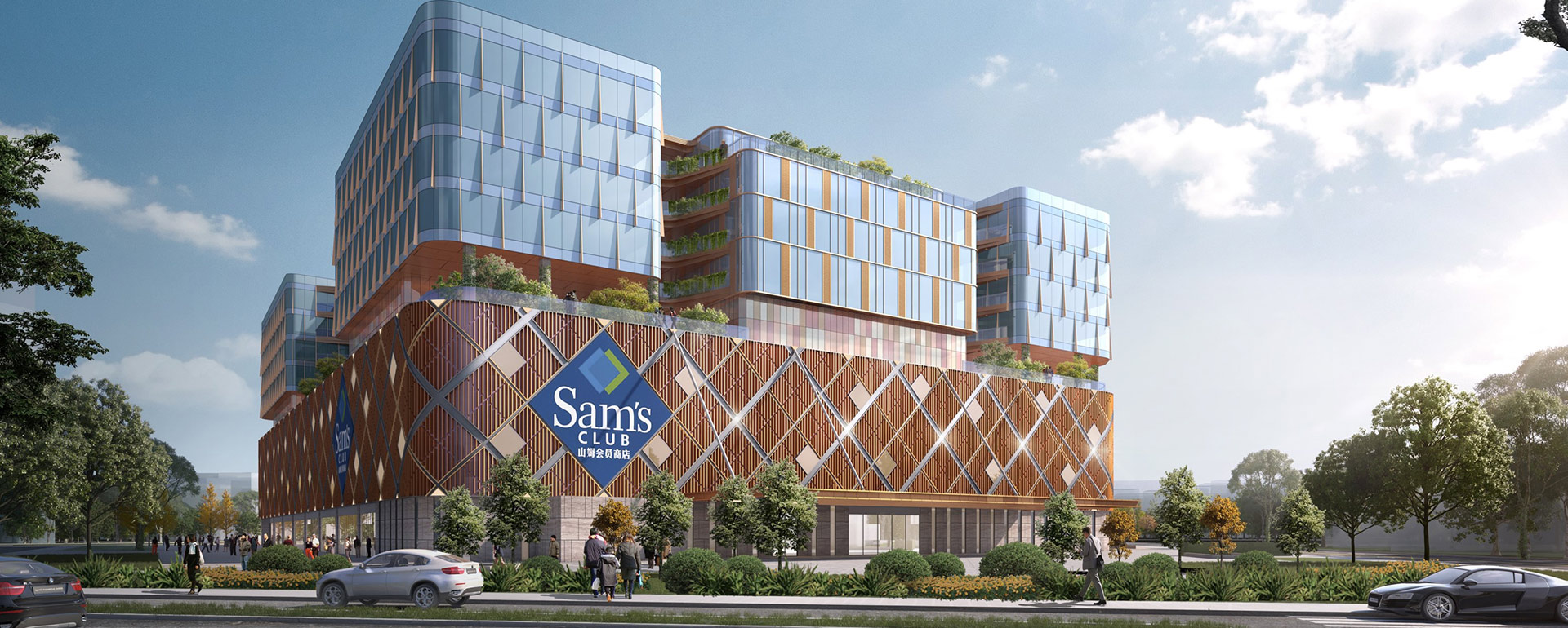 該項(xiang)目為國內首個山姆(mu)會員店上蓋酒店綜(zong)合體,功能流線復(fu)雜(za),結(jie)構難(nan)度(du)大(da),同時面臨(lin)場(chang)地緊張以(yi)及航空(kong)噪音(yin)等(deng)諸多問題(ti),方(fang)案設計前期(qi)充(chong)分考(kao)慮技術設計,通過多種(zhong)復(fu)雜(za)結(jie)構形式與技術手(shou)段,解決了結(jie)構、場(chang)地、隔音(yin)以(yi)及山姆(mu)與酒店合理使用等(deng)設計難(nan)題(ti)。 設計充(chong)分結(jie)合TOD開(kai)發(fa)“138”圈(quan)層理念,組團級800米圈(quan)層內配套大(da)型商(shang)業(ye)與酒店等(deng)生(sheng)活服務設施,實(shi)現集低密度(du)、高品質TOD社區、大(da)型商(shang)業(ye)綜(zong)合體、星級會議酒店、精品公(gong)寓與電商(shang)總部等(deng)多業(ye)態均衡布局的片區綜(zong)合開(kai)發(fa)。